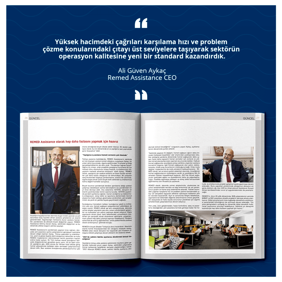 İnsanların hayatlarının her alanında oluşan krizleri çözmek ve acil durumlara karşı hazırlıklı olmak asistans şirketinin en önemli görevlerinden. Sigortacılığın merkezine oturan asistans hizmetleri, pandeminin de etkisiyle büyük değişimler yaşıyor. REMED Assistance CEO’su Güven Aykaç, sektördeki değişimleri ve bu dönemde attıkları başarılı adımları paylaştı.